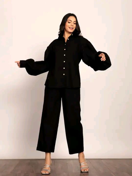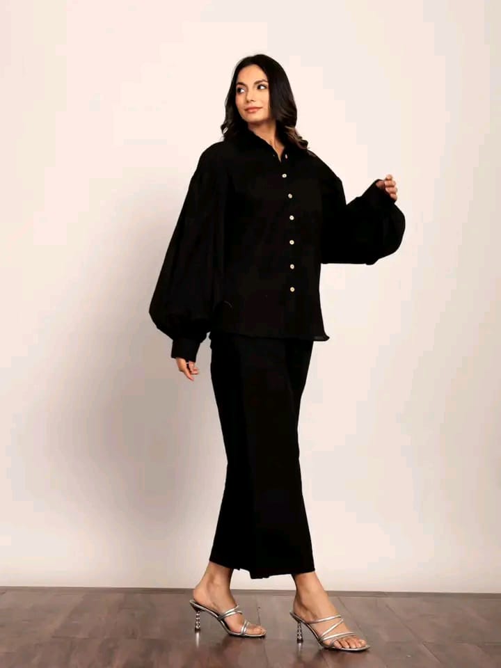 A wardrobe essential that never goes out of fashion. This Black Classic Co-Ord Set is versatile enough to style up with heels & accessories for a formal look, or keep it casual with flats for everyday comfort. A true must-have for modern women.