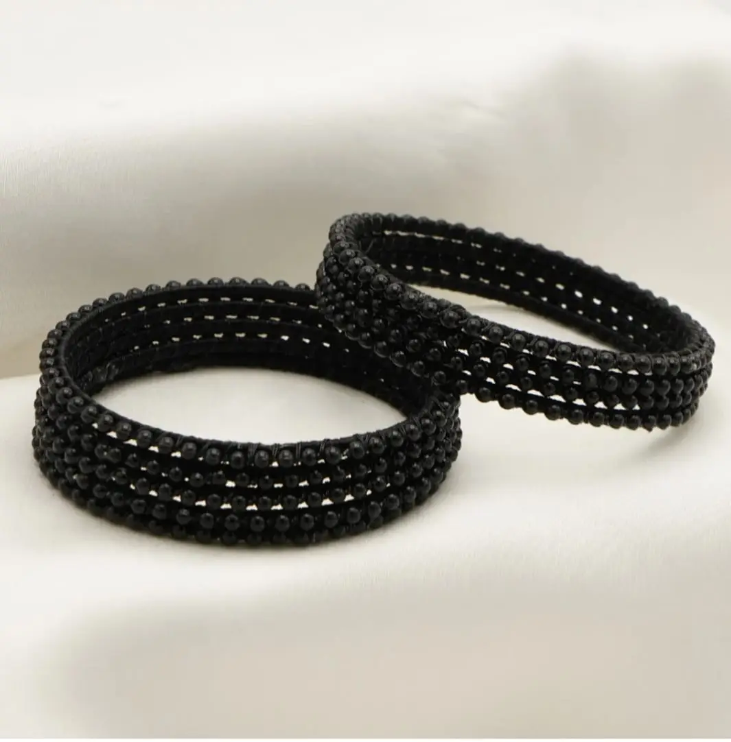 Add a timeless touch to your style with Shaaz Black Handmade Bangles, beautifully crafted for shine, durability, and comfort. The bold black color makes them a versatile accessory, ideal for pairing with both traditional and modern outfits.