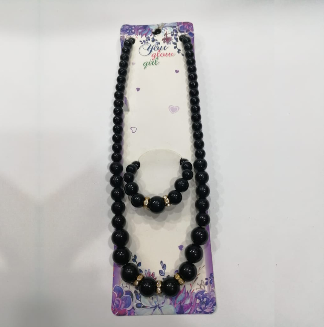 Complete your look with the Shaaz Black Stone Mala & Bracelet Set, crafted with premium black beads for a bold, stylish, and timeless appearance.